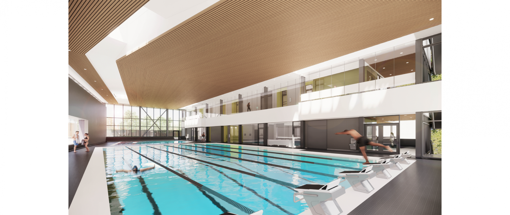 The Davisville Community and Aquatic Centre is conceived as a critical piece of social architecture, leveraging its constrained site and ambitious sustainability goals, to create a dynamic and convivial community hub that acts as a ‘connective tissue’ in a rapidly densifying part of the city. The innovative design targets CaGBC Zero Carbon Building Standard V2 certification, contributing to the city’s larger 2040 Net Zero Emissions goals. The urban design, and architecture, prioritizes connectivity and establishes a powerful link to the adjacent school, creating a key community hub, assisting in unifying the divided neighborhood.