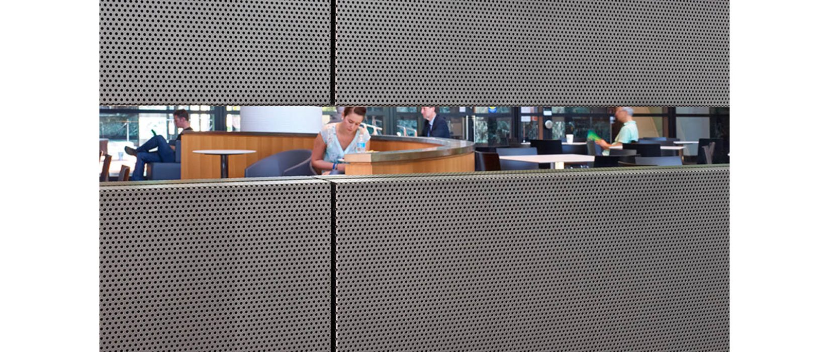 The Mississauga Civic Centre C Cafe is located in Mississauga City Hall at the crossroads of the Grand Foyer/Council Chamber and the building’s main entrance. Originally used as a greenhouse space for quiet relaxation and breaks from daily activities, the cafe allows for similar activities in its new form as a cafe and lounge for both civic centre workers and visitors. Elements such as suspended circular decorative light fixtures highlight the space and recall the shapes and images of the previous conservatory. The cafe has become a central focal point of the building and the adjacent square.